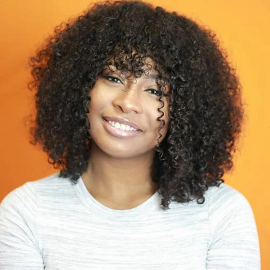 YYONG Afro Kinky Curly with Bangs Human Hair Wigs