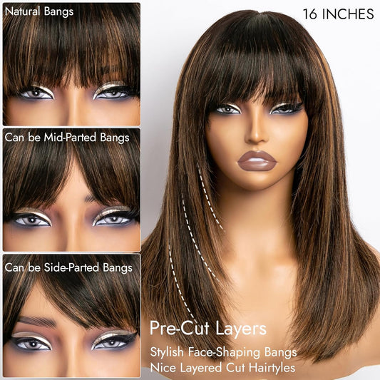 YYONG Bob Straight 3x1 Lace 1B/30 Highlight Ombre With Bangs Wigs Pre-cut Layers Human Hair Wigs
