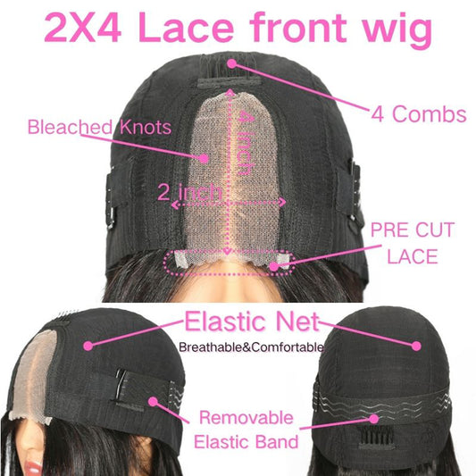 YYONG bob Straight/body Hair Pre-cut 2x4 Lace Pre Bleached Tiny Knots Glueless Human Hair Wigs