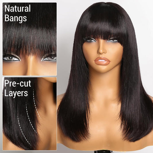 YYONG Bob Straight 3x1 Lace With Bangs Wigs Pre-cut Layers Human Hair Wigs