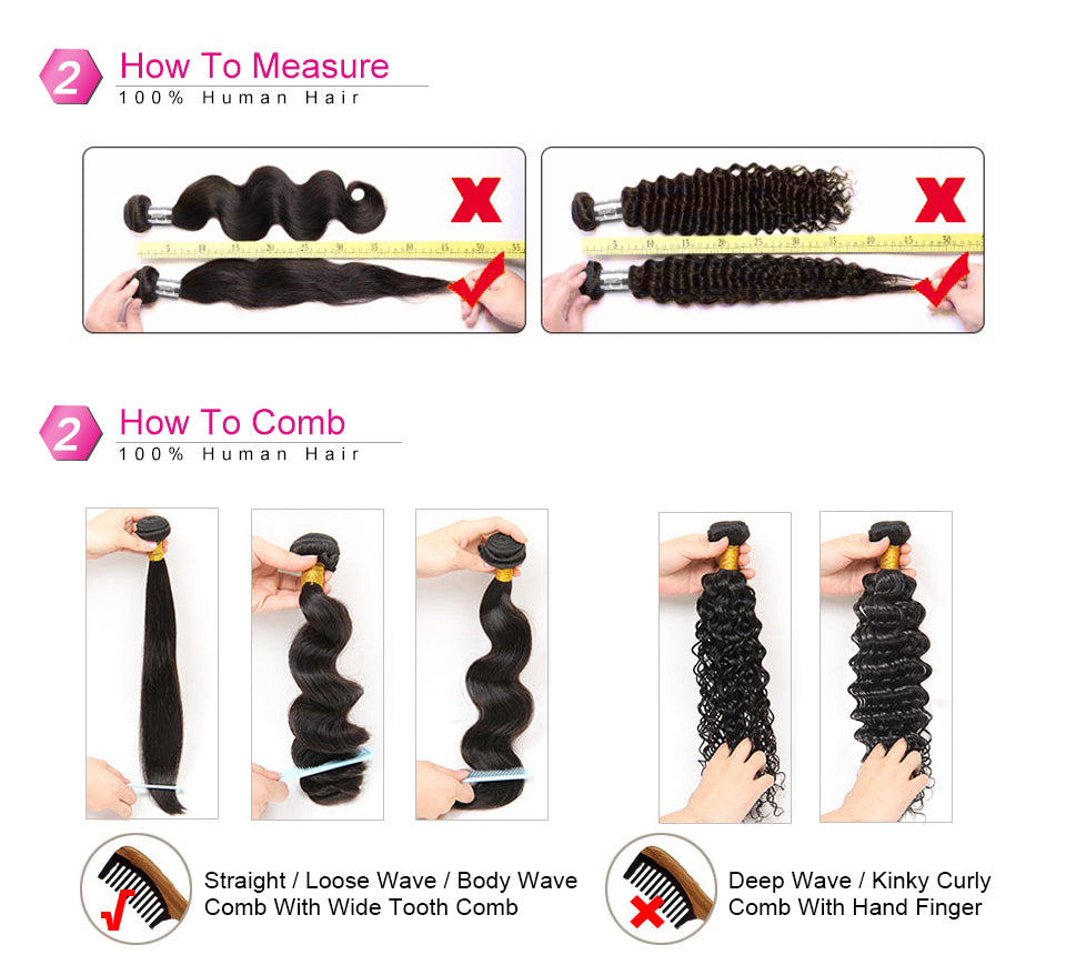 Comb the body wave or straight hair with a wide brush, if your hair is curly hair, please comb it by the fingers.